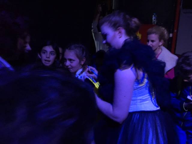 Ik voelde me net een mascotte in Disneyland: in mijn enorme dode-bruidsjurk kreeg ik van alle kanten onaangekondigd knuffels en kusjes van (met name) kleine meisjes die zo graag mijn jurk aan wilden raken. De oudere kinderen wilden één voor één op de foto met Eurydice. Katapliktikó , vrij vertaald ´rete-cool´, vonden zij de opera.