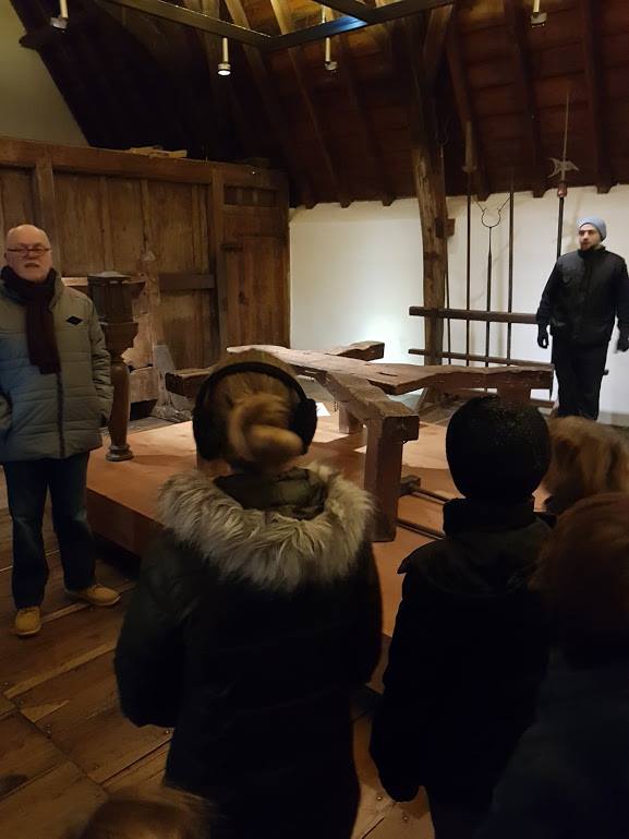 In de martelkamer liepen we langs divers marteltuig waar Bob beeldend, maar met nuchtere humor vertelde over lijfstraffen en de verschillende vormen van de doodstraf. Zo werden bijvoorbeeld de rijken met een zwaard ‘chique’ onthoofd. Deze opmerking is lang bij mijn jongste blijven hangen. Over hangen gesproken, wist je dat het niet netjes was om een vrouw op te hangen? Omdat men dan onder haar rok kon kijken en er geen ondergoed werd gedragen. Voor vrouwen week men uit naar het keurige alternatief van wurging aan een paal.