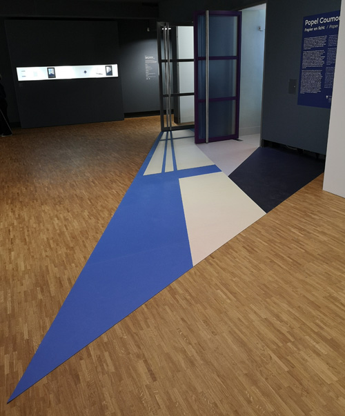 Op het formaat van een hele wand zijn foto’s uitvergroot, bijvoorbeeld van een museumzaal in de 1957 en van de binnenkant van een zaalmaquette. Ook de latere aanbouw van de Schamhartvleugel komt aan de orde – het gebouw waar nu het Fotomuseum en KM21 gevestigd zijn. En daar krijgt de museumarchitectuur een extra dimensie in de tentoonstelling van Popel Coumou.
